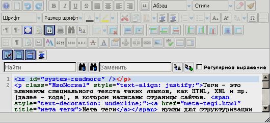 Визуально очень удобно находить нужный фрагмент для редактирования и увидеть ошибки в коде, которые подсвечиваются красным цветом. Подсветка кода в редакторе JCE editor в режиме нажатой кнопки "Исходный код". Внимание! В новых версиях редактора кнопка исходный код только в платном варианте. Мы пока используем старые версии с этой кнопкой и не обновляемся.![]()